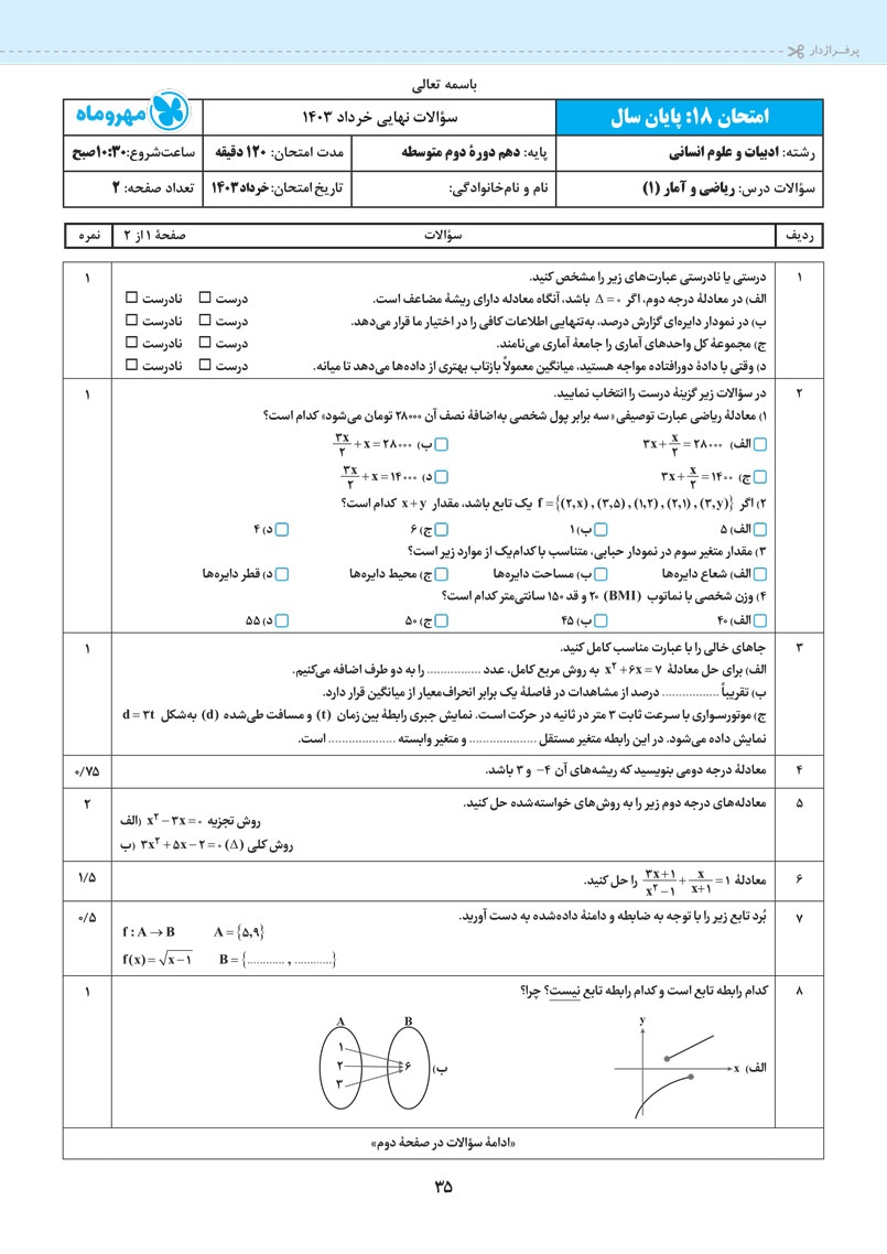 • آموزش مرحلهبهمرحله و گامبهگام درس ریاضی به سبک امتحان نهایی
