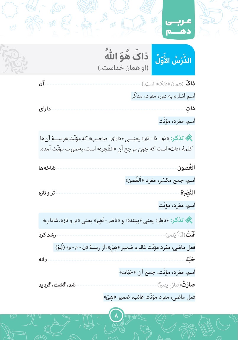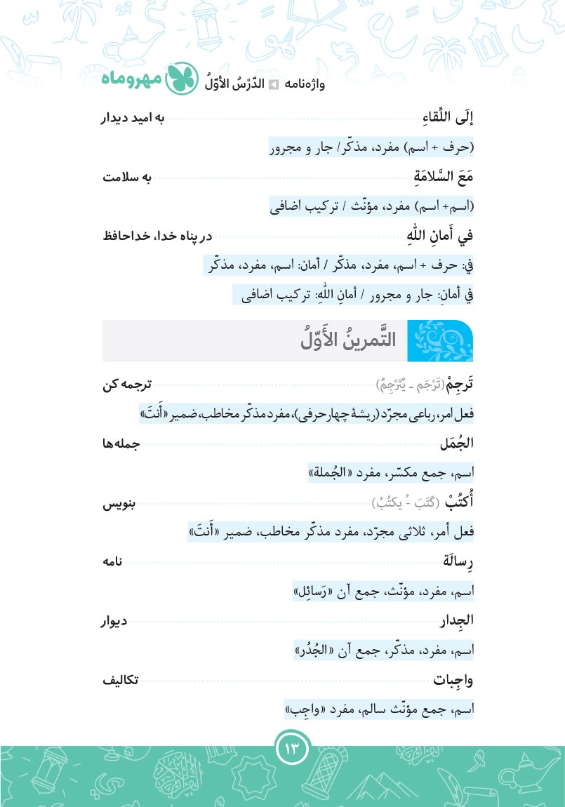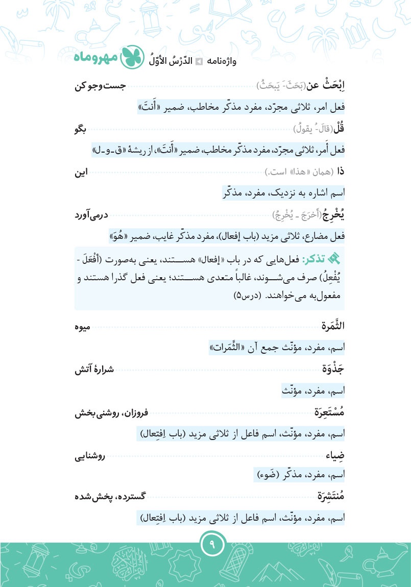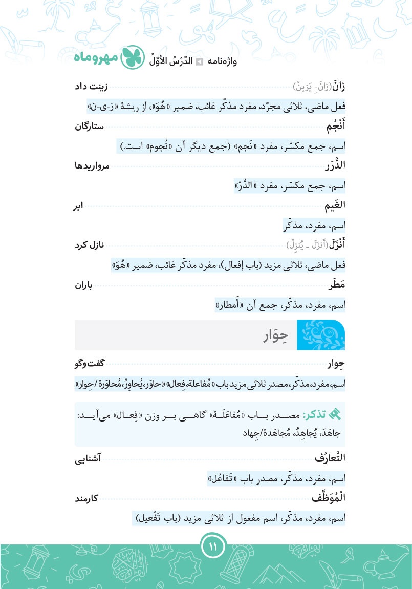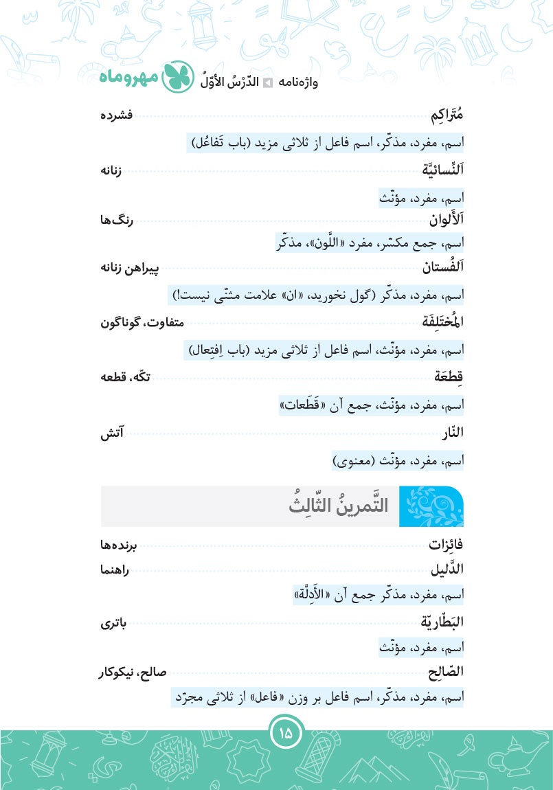 - ارائه لغات سطربهسطر هر درس همراه با معنی
