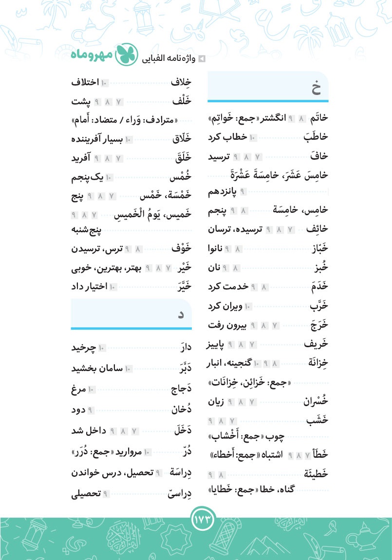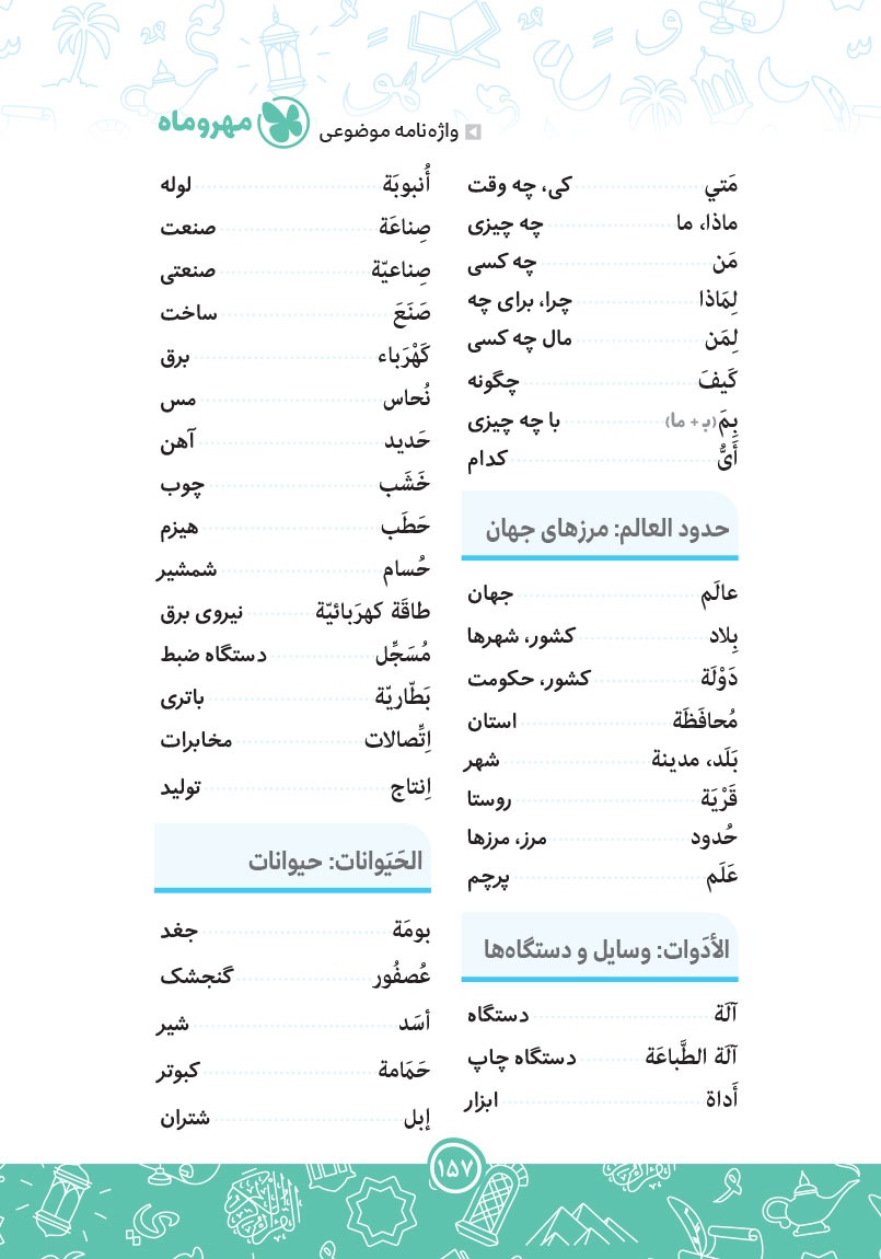 - واژهنامه الفبایی و موضوعی لغات هفتم تا دهم