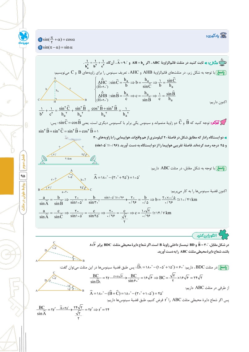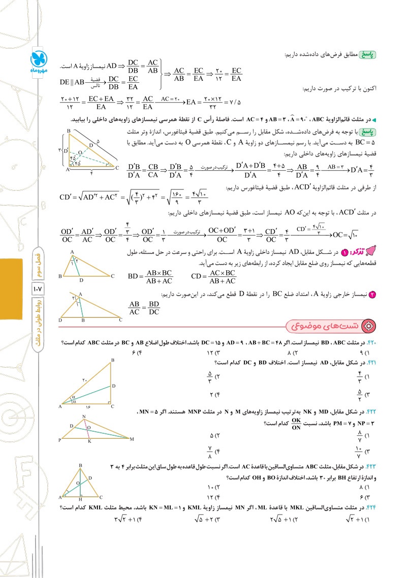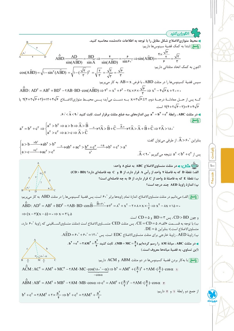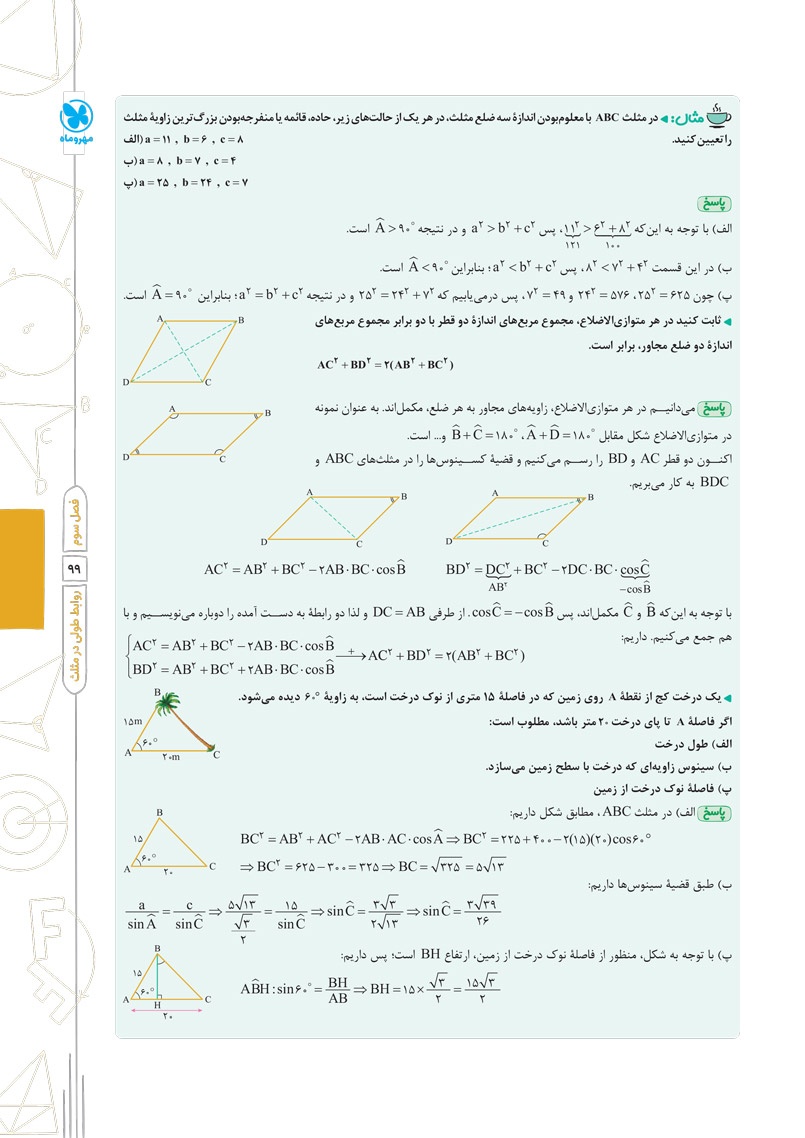- حل تشریحی تمام فعالیتها، کار در کلاسها و تمرینهای کتاب درسی در جای مناسب آن ها