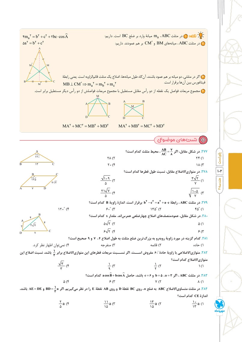 - ارائه تستهای موضوعی (کنکوری، تالیفی) در انتهای هر درسنامه و تست های ترکیبی (کنکوری، تالیفی) در هر فصل