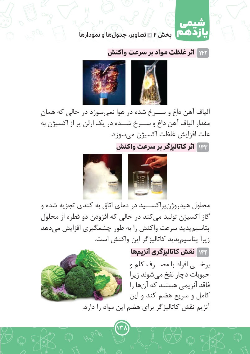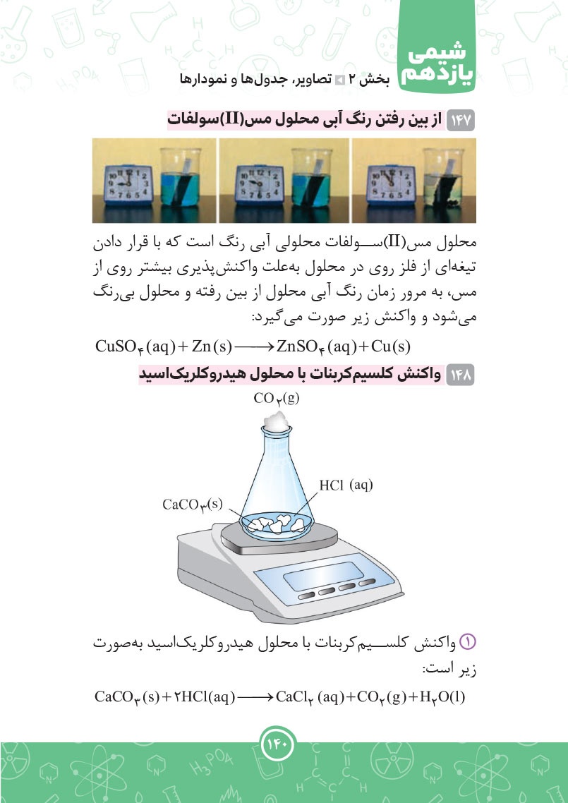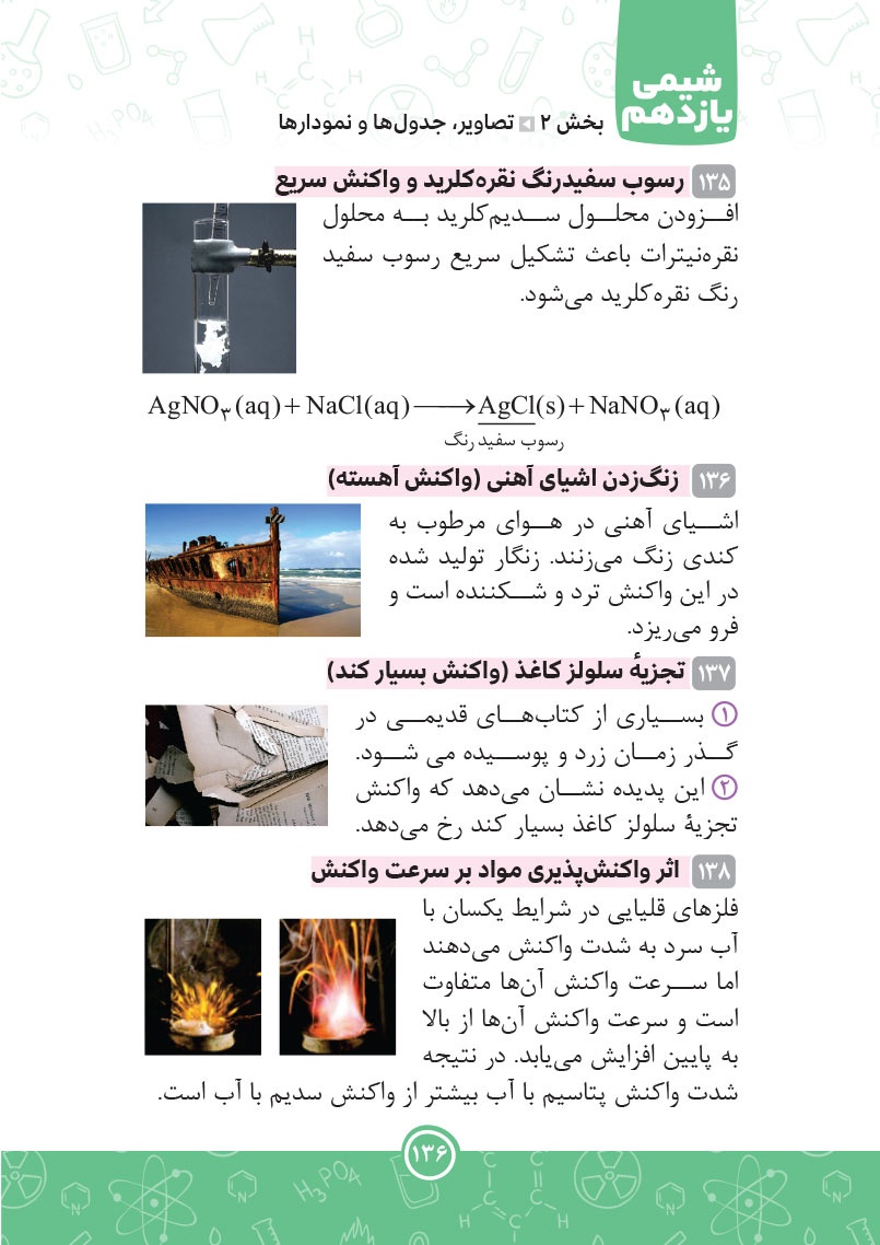 - بررسی واکنش‌های موجود در کتاب درسی و نکته‌های مربوط به هر واکنش