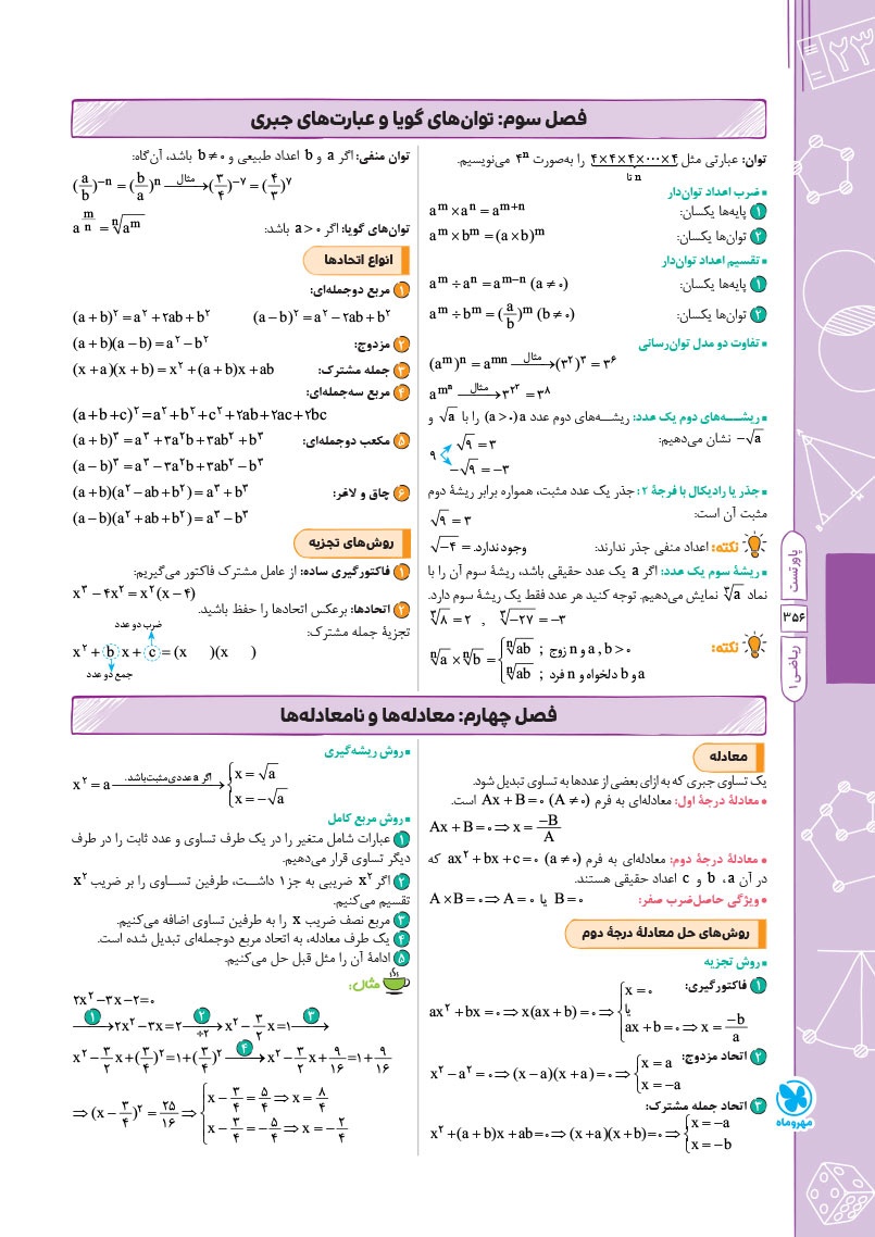 - فرمول نامه، حاوی فرمول ها و نکات مهم هر فصلبرای دریافت پاسخ آزمونهای سایت پاورتست ریاضی دهم کلیک کنید