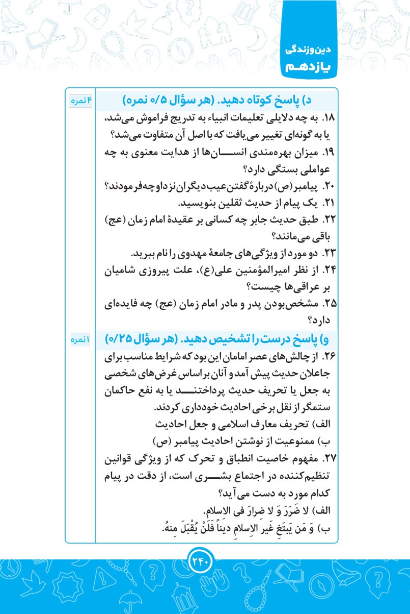 نمونه صفحات لقمه دین و زندگی یازدهم