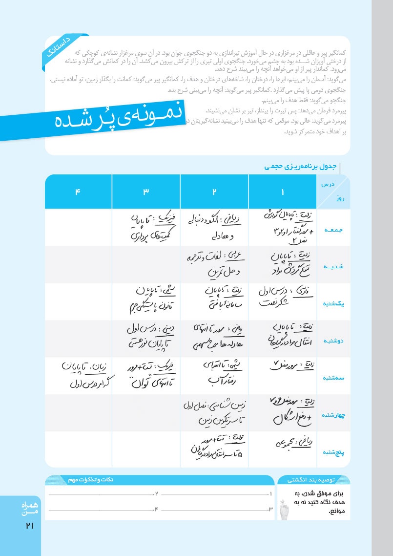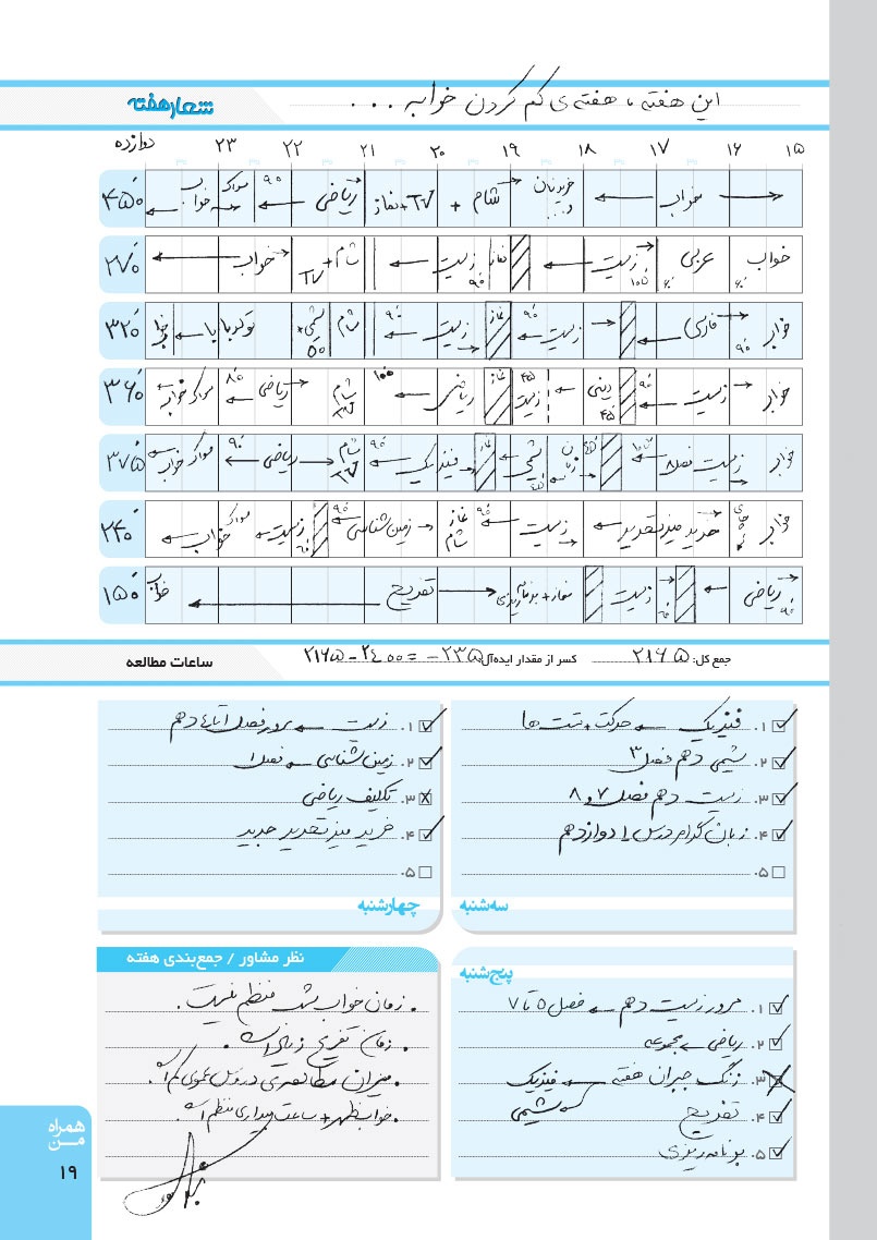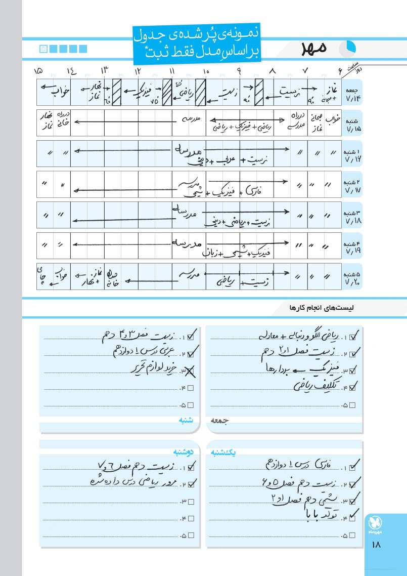جداول برنامه ریزی هفتگی شامل جداول مسیر زمان و ثبت مطالعه درس به درس