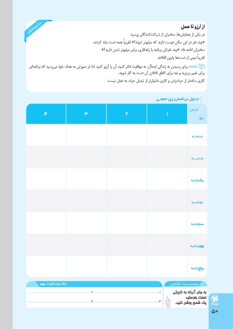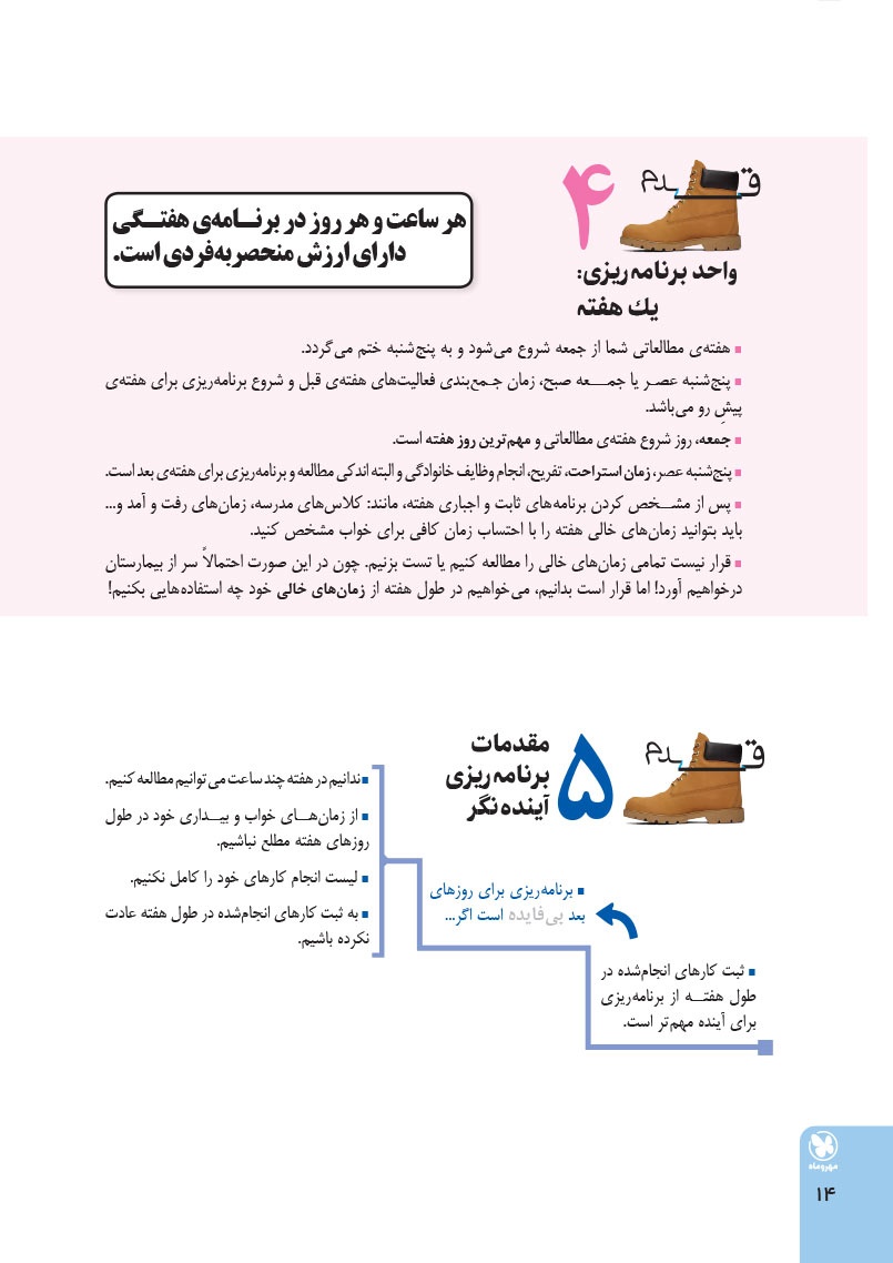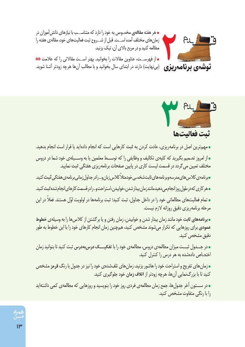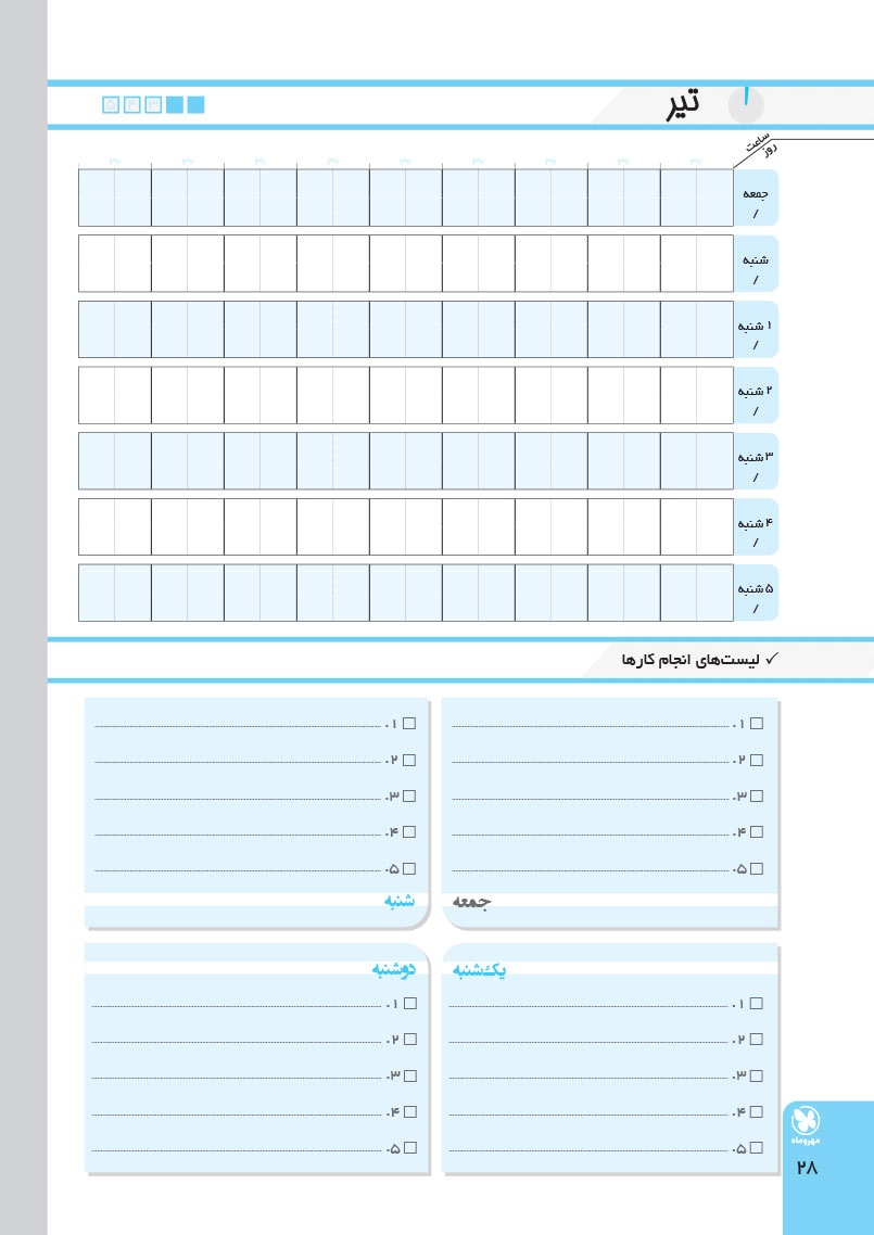 جداول برنامه ریزی هفتگی شامل جداول مسیر زمان و ثبت مطالعه درس به درس