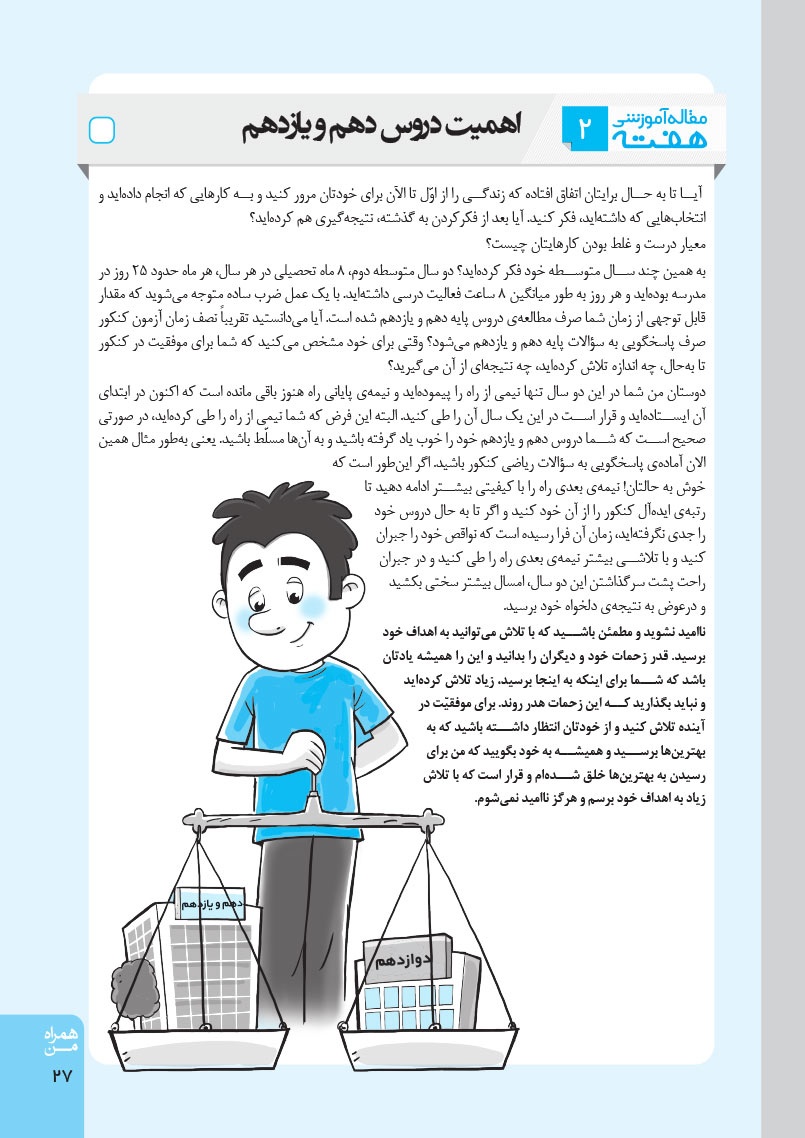 مقالات مشاوره ای هفتگی متناسب با نیازمندی های هر هفته کنکور