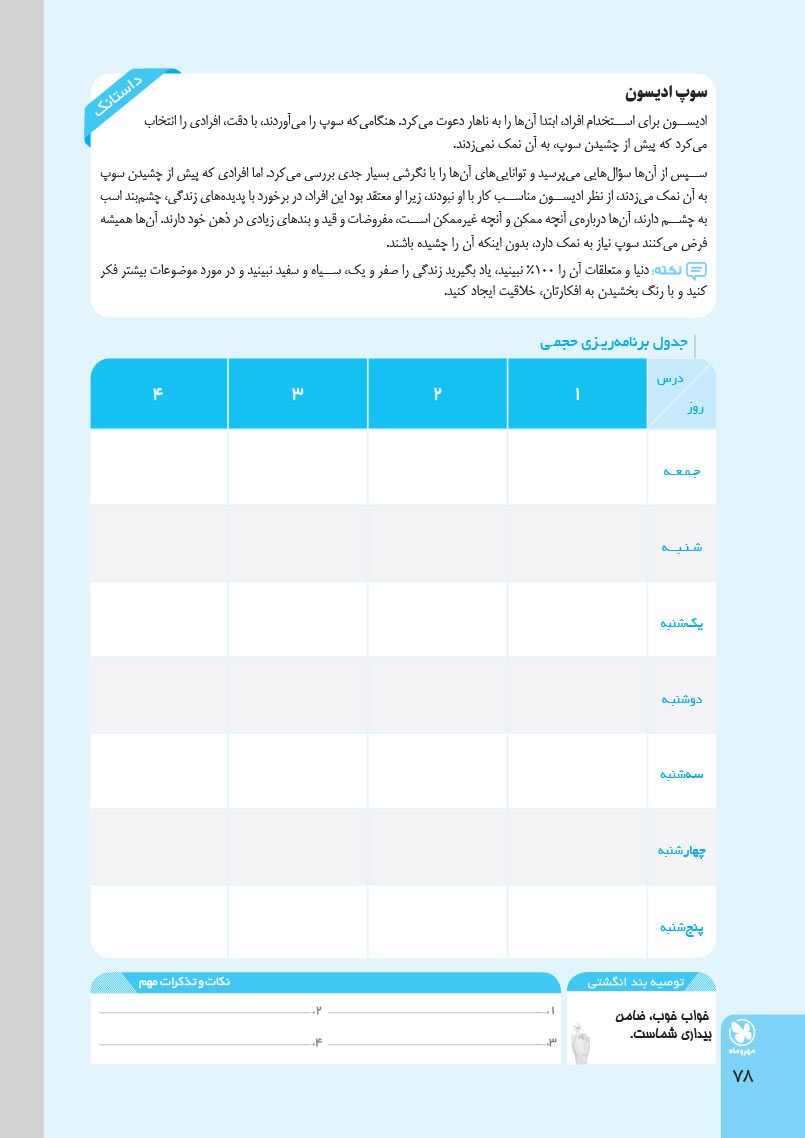 توصیه هاو برنامه های اختصاصی برای ایام خاص مانند تابستان ،دوران عید و دوره جمع بندی،ایام امتحانات و روزهای قبل از کنکور
