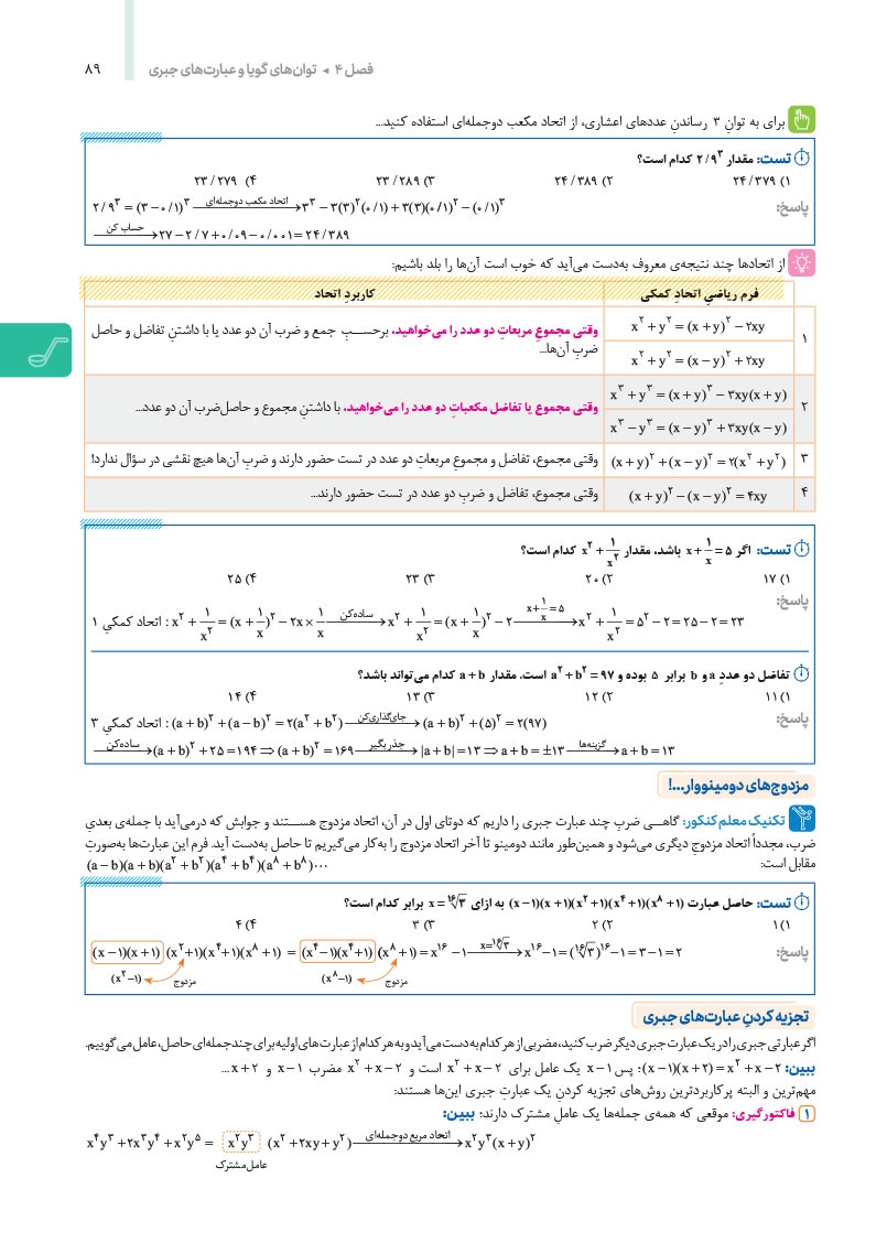 - تست‌های هدفمند، منتخب و دربرگیرنده‌ی تمام مباحث کتاب‌های ریاضی 2،1 و 3