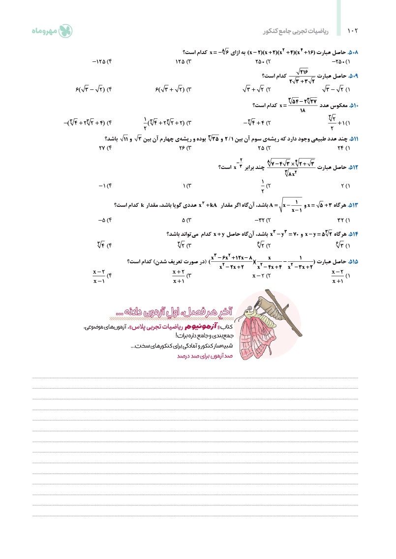 من قصد خرید کتاب جامع ریاضی تجربی مهرماه رو دارم (دوجلد) و من قصد دارم چاپی از اون کتاب رو خریداری بکنم که سولات کنکور تیر 404 رو هم داشته باشه