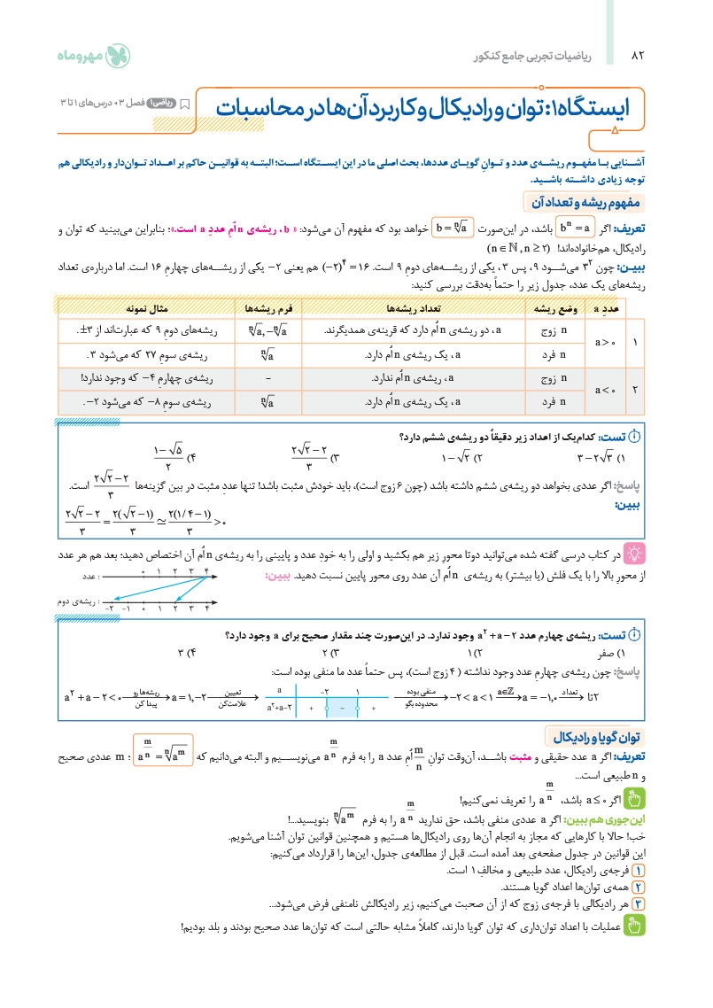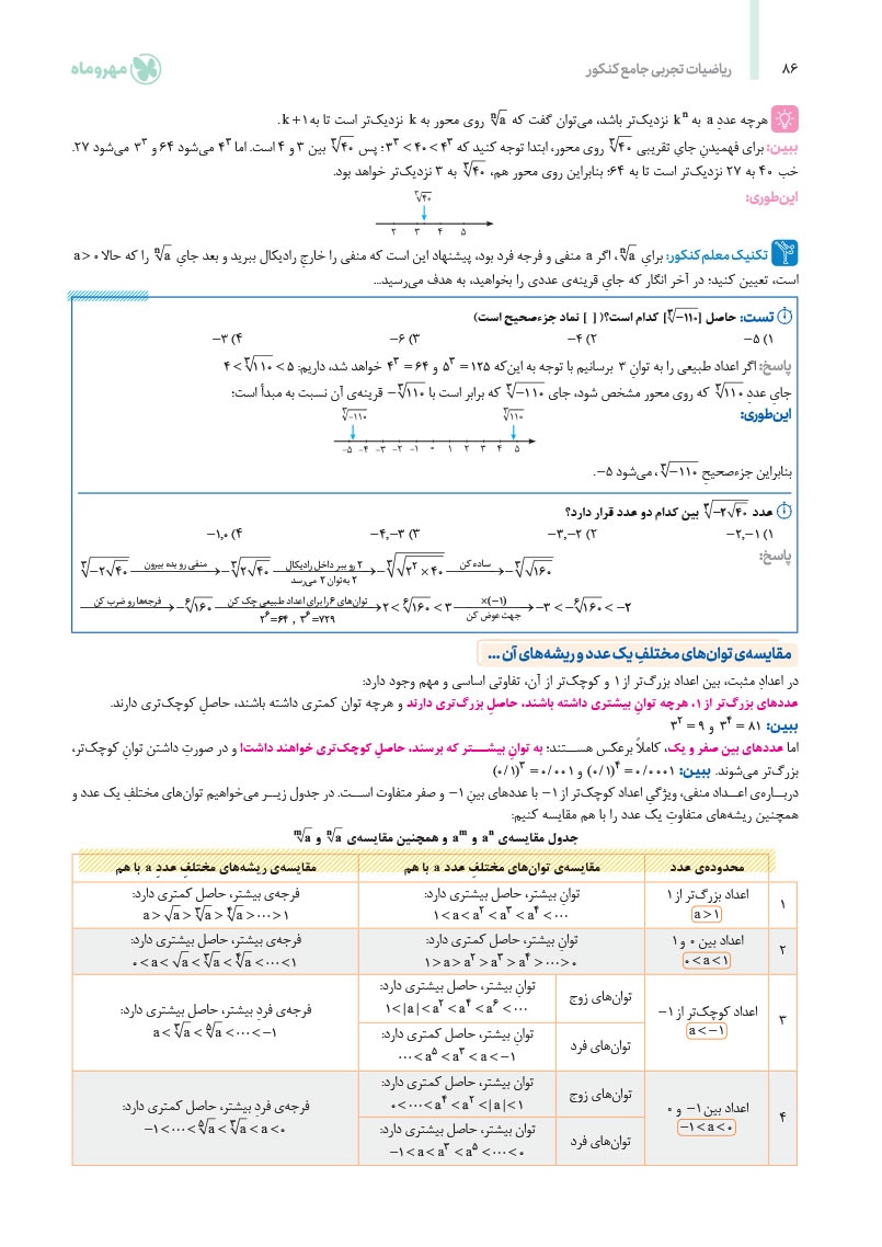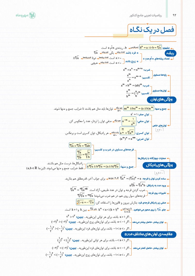 نمونه صفحات جامع ریاضیات تجربی کنکور (2 جلد) - جلد درسنامه و بانک سوال + جلد پاسخنامه رایگان
