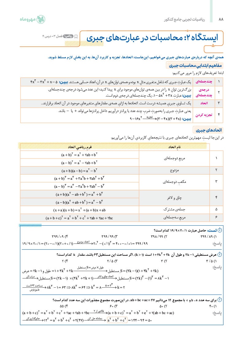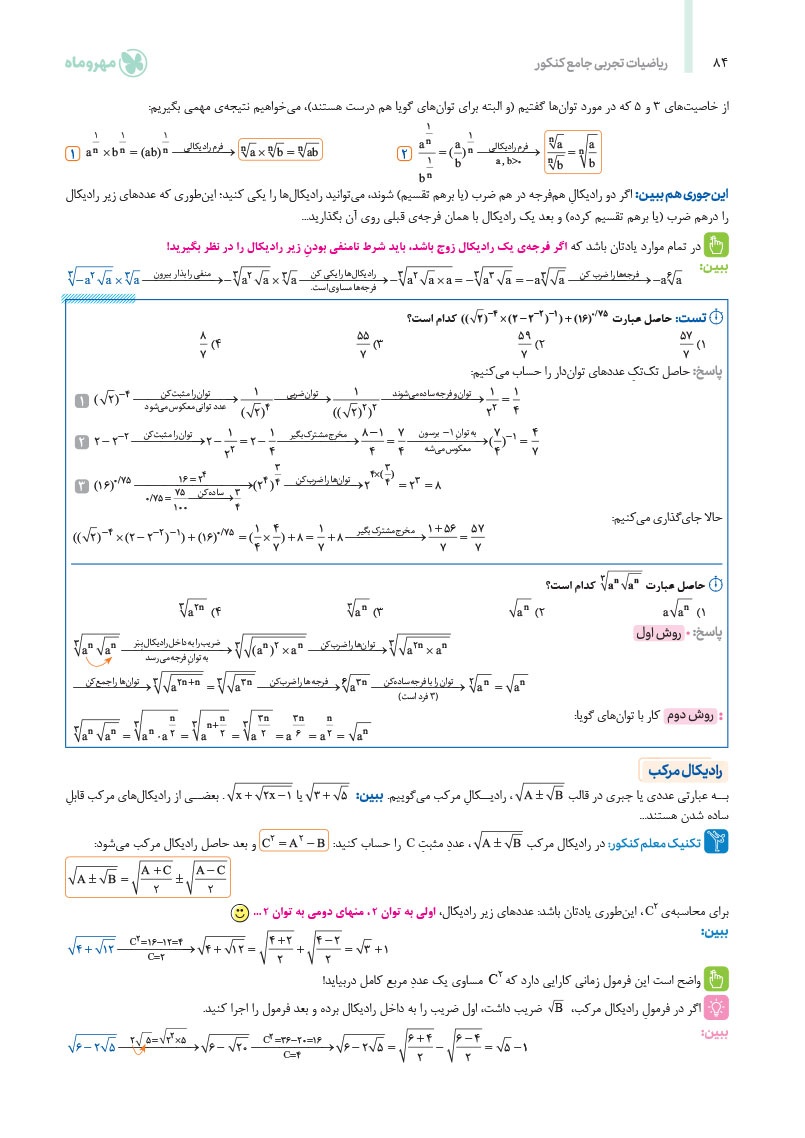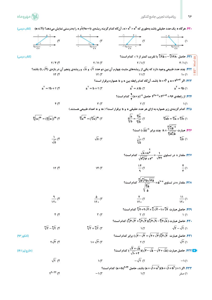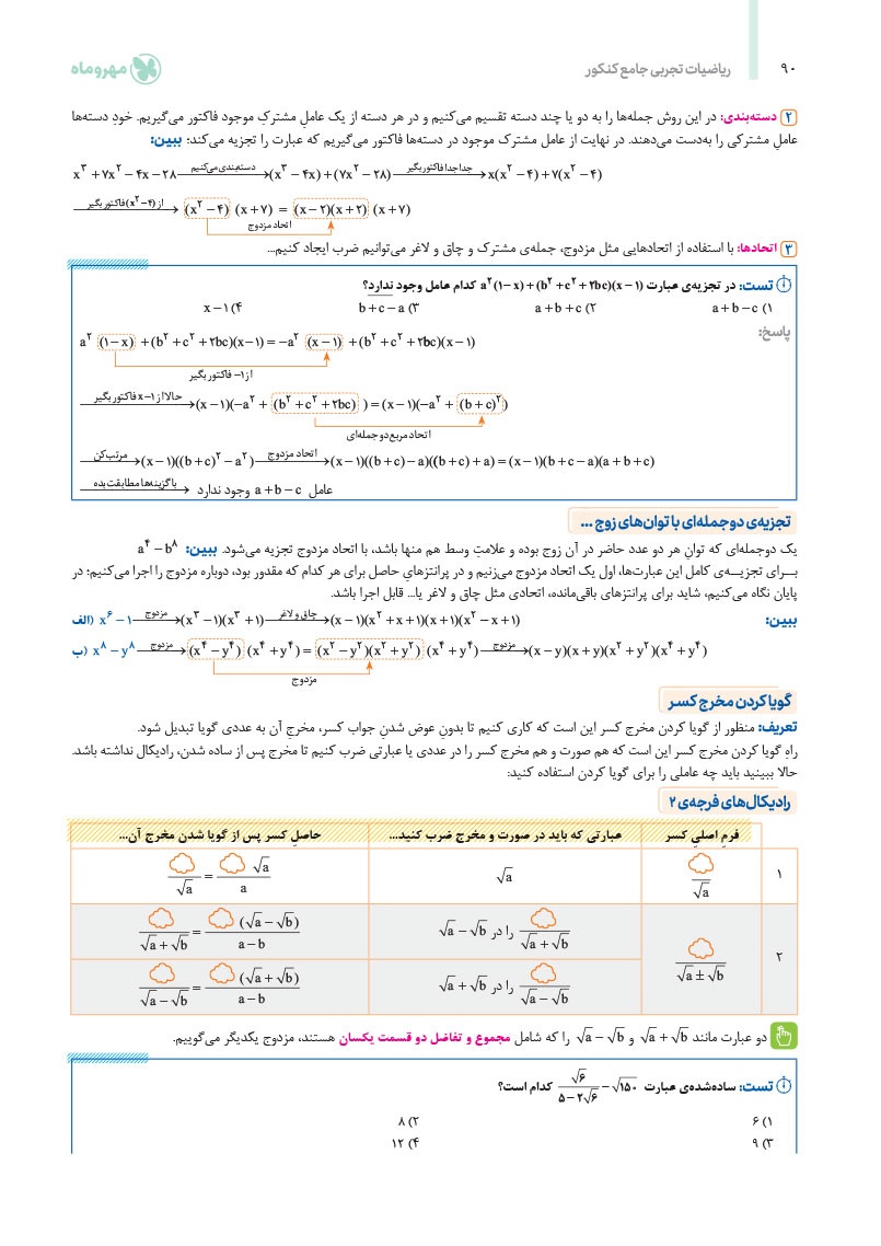 نمونه صفحات جامع ریاضیات تجربی کنکور (2 جلد) - جلد درسنامه و بانک سوال + جلد پاسخنامه رایگان