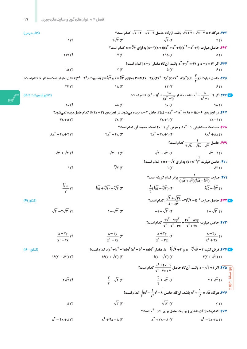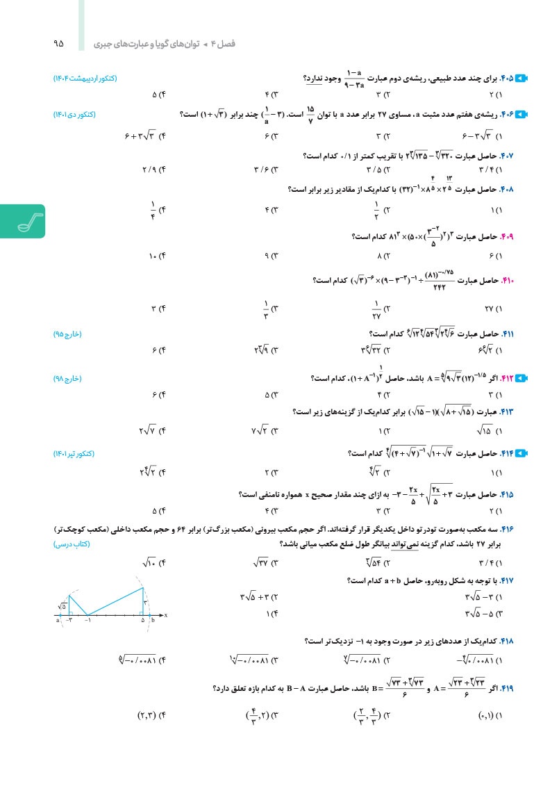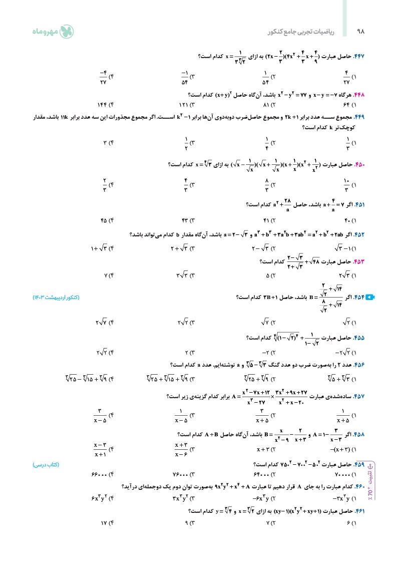 دوست عزیز کتابها هرساله تغییراتی دارند که در آخرین چاپ اعمال میشوند، از جمله سوالات کنکور سالهای قبل، که در حال حاضر کتاب چاپ 1404 کاملا مناسب برای کنکور 1405 میباشد.