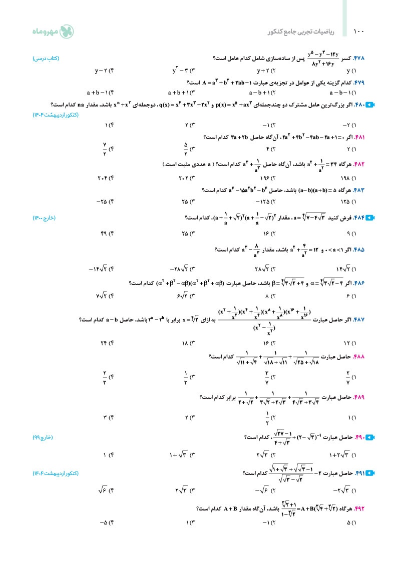 دوست عزیز کتاب چاپ 1404 منتشر شده است و مناسب برای کنکور 1405 میباشد و میتوانید برای خرید اقدام بفرمایید.