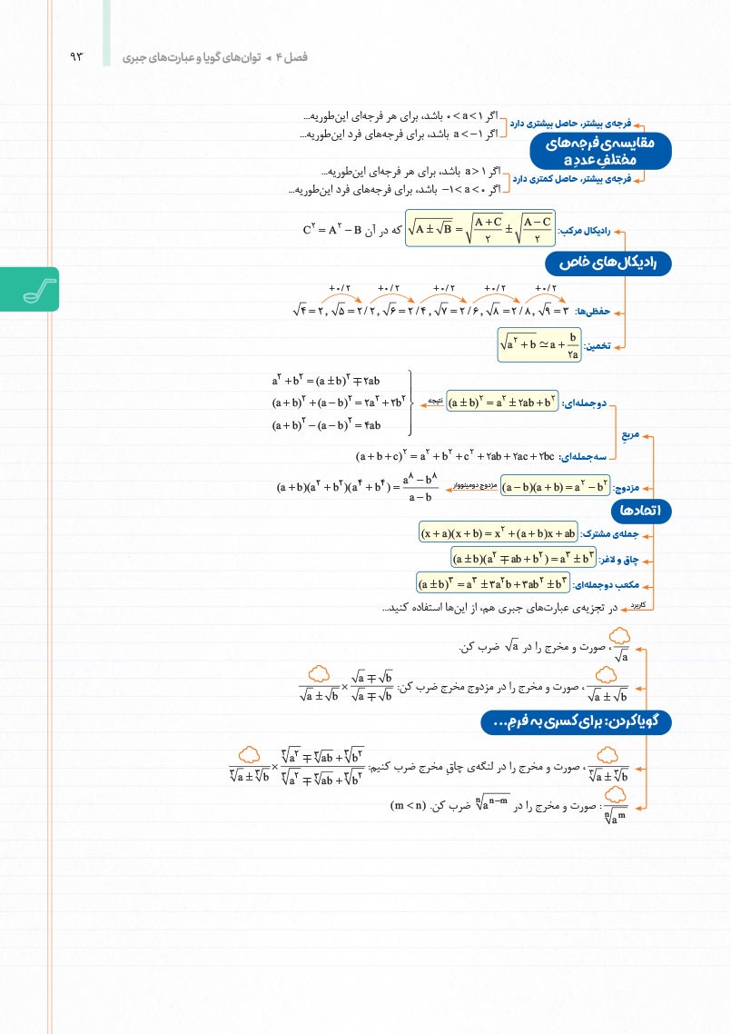 - خلاصه‌ی نموداری مطالب هر فصل برای ایام مرور، آزمون‌ها و جمع‌بندی