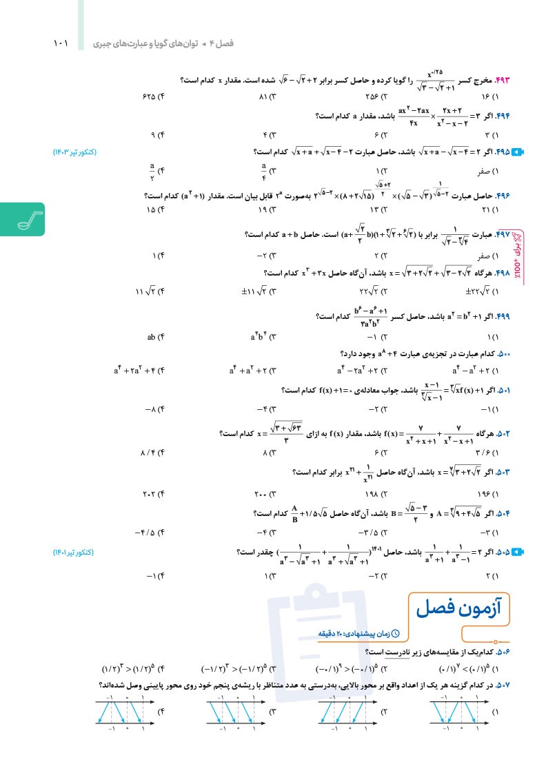 - تست‌های استاندارد و منتخب، بر اساس کتاب‌های درسی جدید