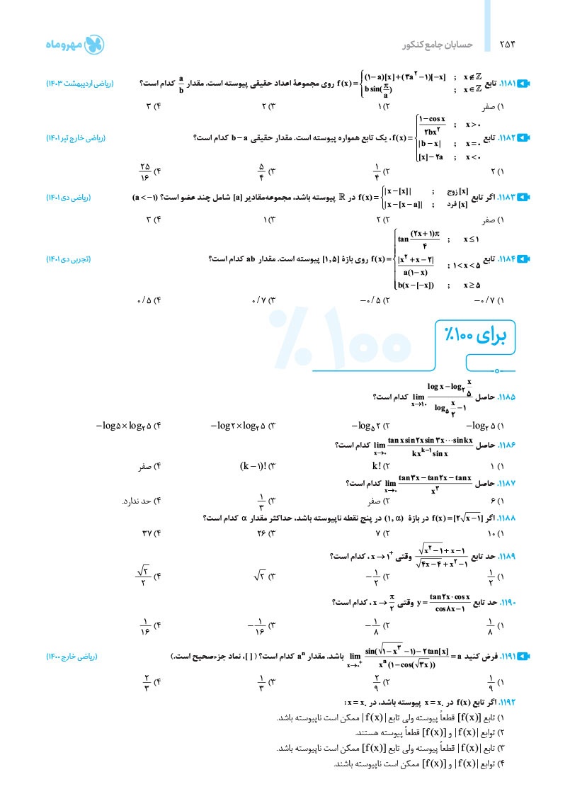 مشاهده نمونه جامع ریاضیات پایه و حسابان کنکور
