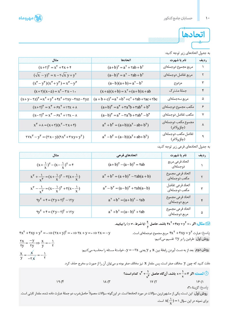 نمونه صفحات جامع ریاضیات پایه و حسابان کنکور