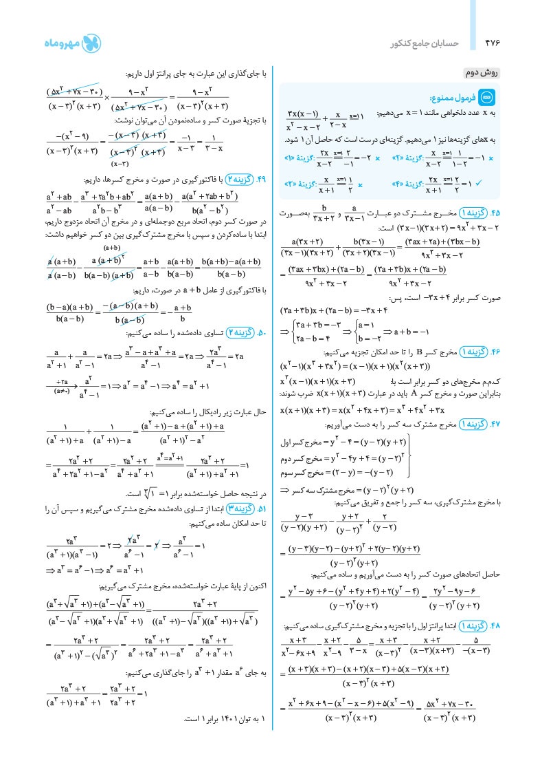 - پاسخنامه کاملا تشریحی با به‌کارگیری روش فرمول ممنوع ( روش رد گزینه و بدون استفاده از فرمول)