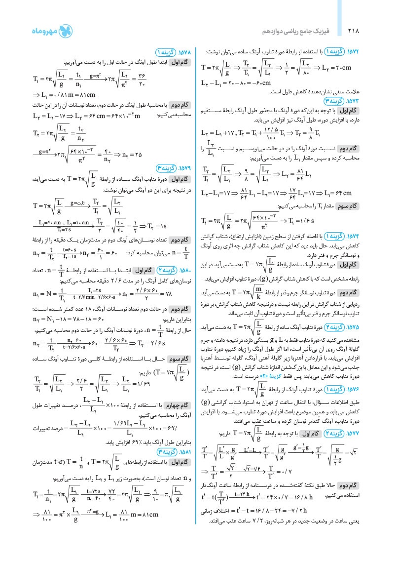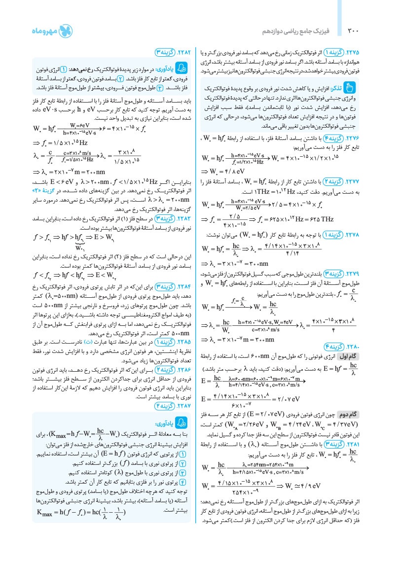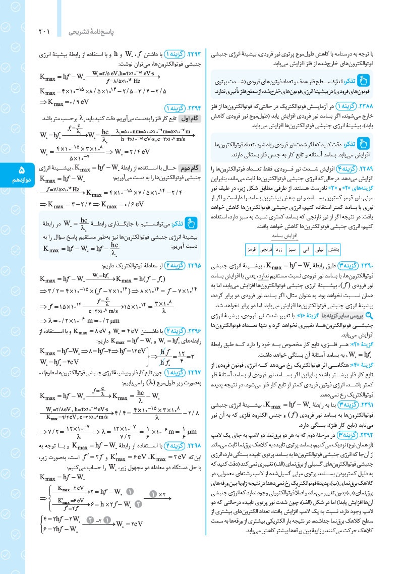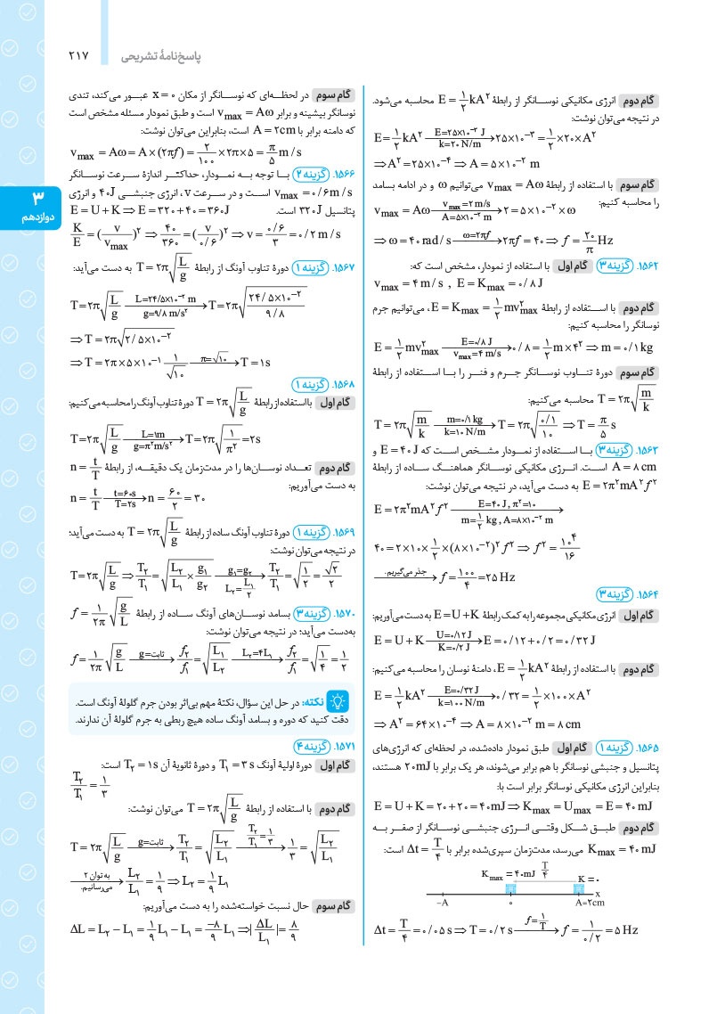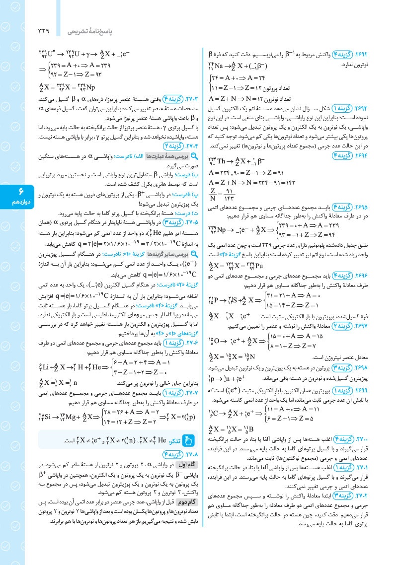- نکات و یادآوریهای تکمیلی در پاسخ تست های منتخب- آزمونهای مبحثی و پایانی در هر فصل
