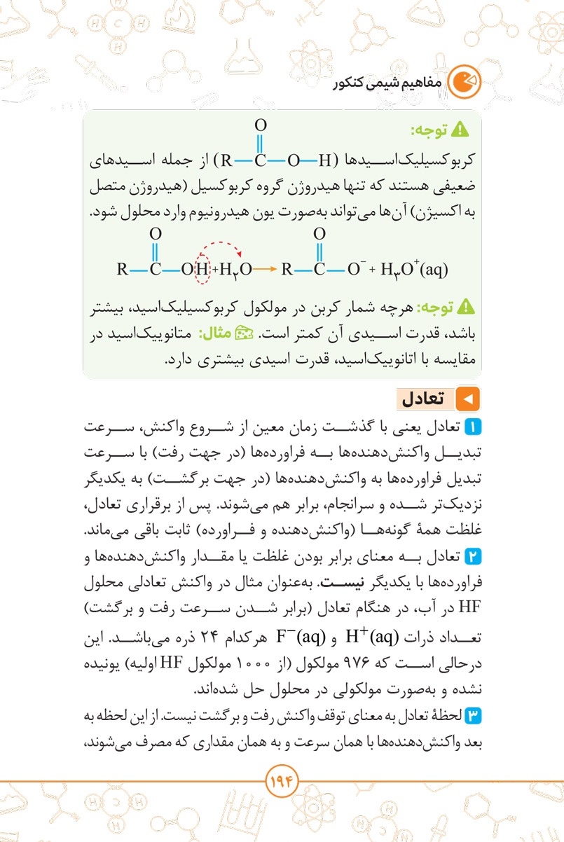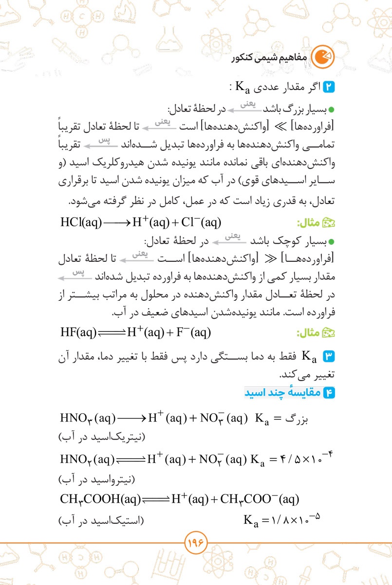 در این کتاب، هر فصل از کتاب درسی، در قالب موضوعات مفهومی متمایز از هم ارائه شده است، ضمناً مفاهیمی که در کتاب درسی به اندازۀ کافی توضیح داده نشدهاند، در اینجا تا حد شیرفهم شدن همۀ دانشآموزان با تفصیل لازم بیان شده است، مطالعۀ کتاب دیگری از همین سری تحت عنوان «حفظیات شیمی» را نیز به داوطلبان عزیز کنکور پیشنهاد میکنیم. مطمئن باشید این کتابهای دو قلو شما را در شیمی کنکور از نظر تستهای مرتبط با متن و مفاهیم کتاب درسی به صورت 100 درصدی بیمه خواهند کرد.