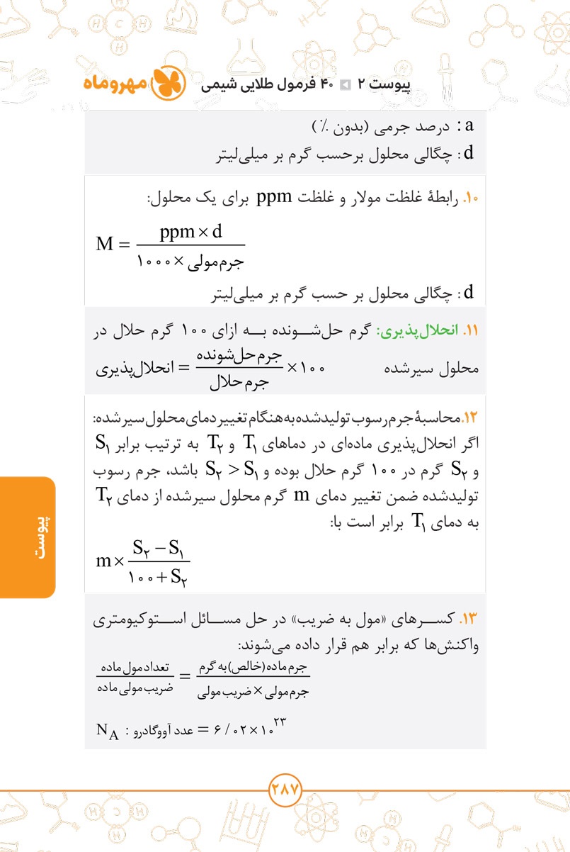 - ضمیمههای ارزشمند: فرمولها و معادلۀ واکنشها