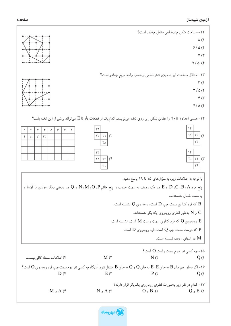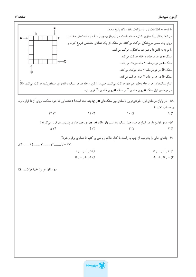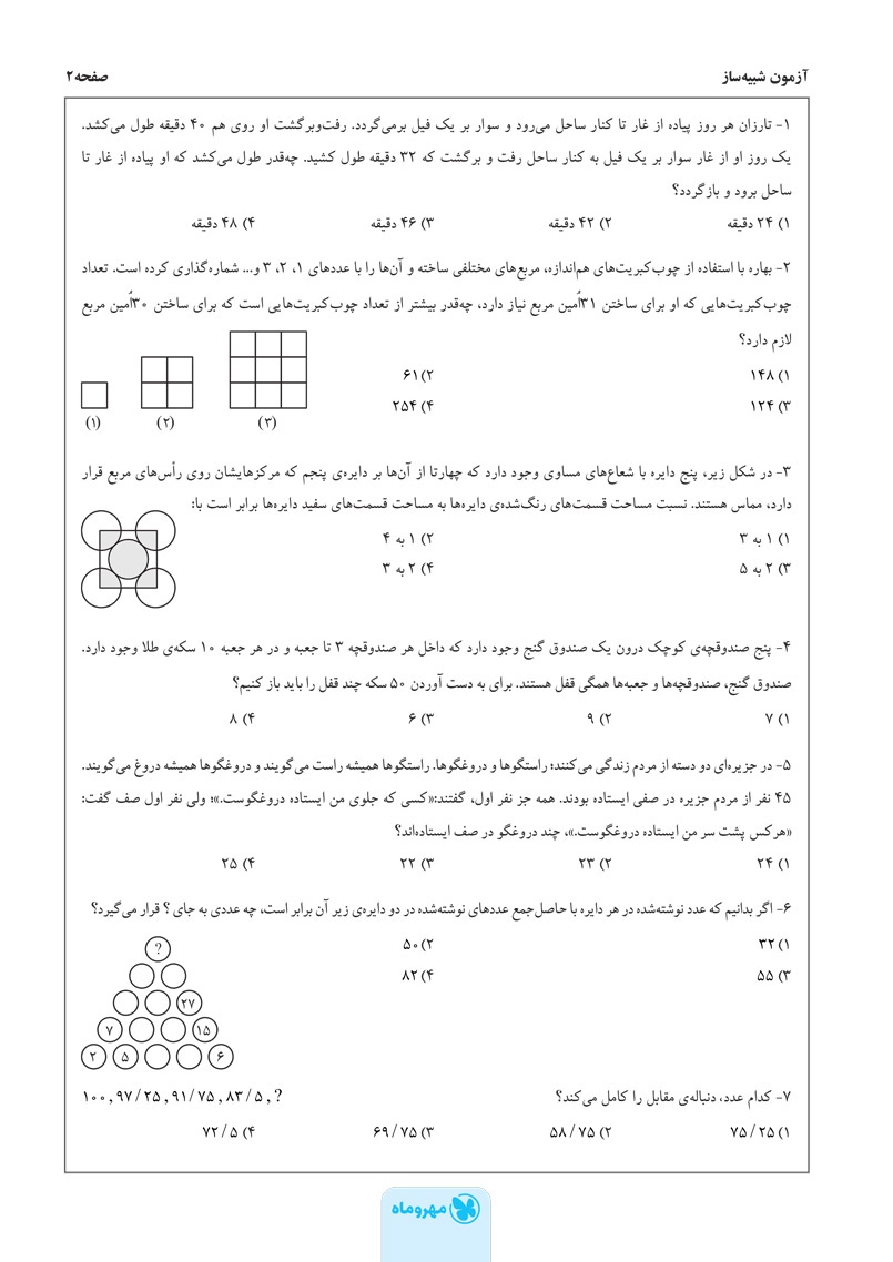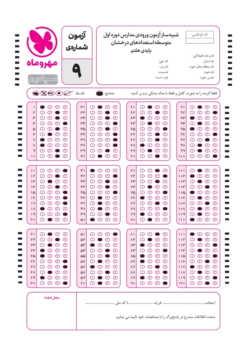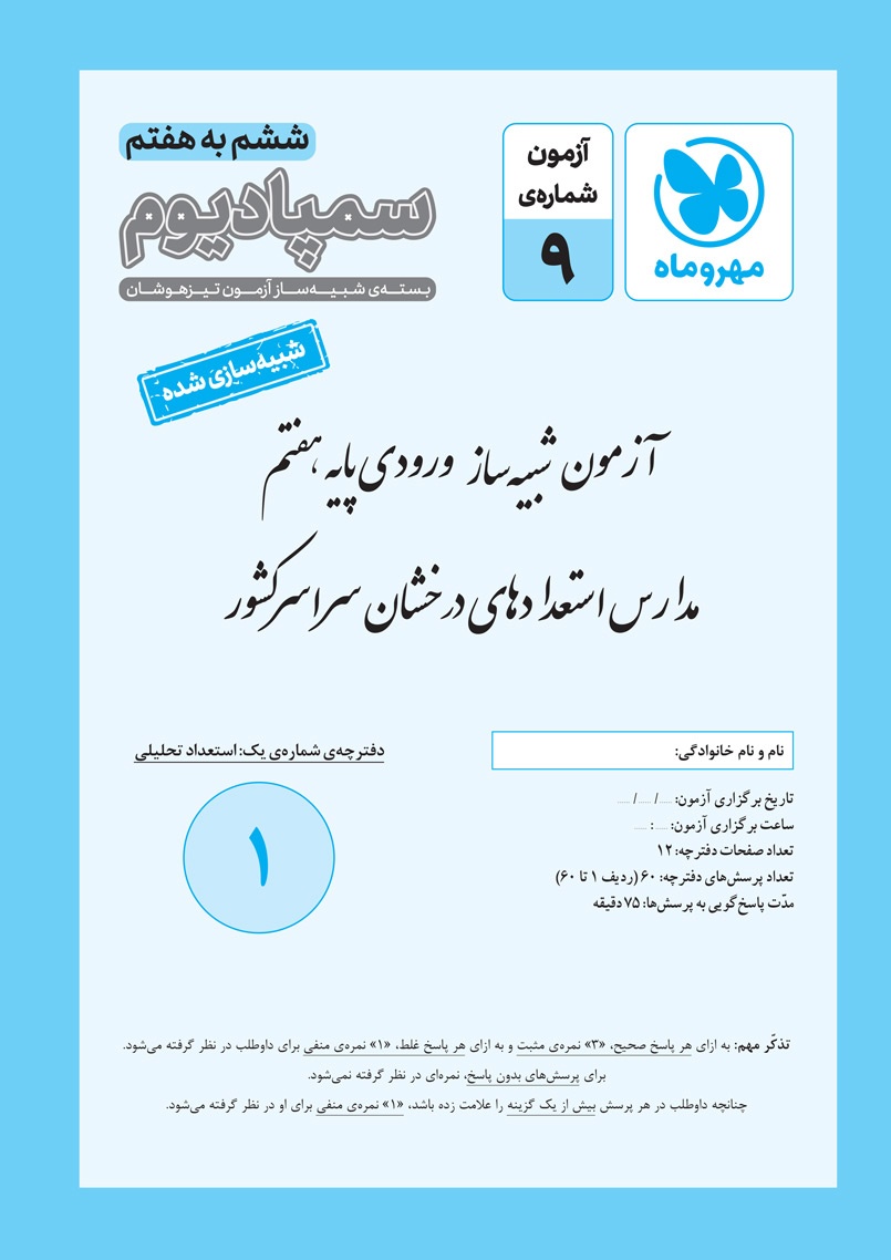 سلام و عرض خسته نباشید.این کتاب واقعا کتاب عالی هستش.من به همه ی کسانی که می خواهند در آزمون تیزهوشان شرکت کنند،این کتا رو پیشنهاد می کنم.ممنون از عوامل مهروماه بابت این کتاب عالی❤️????