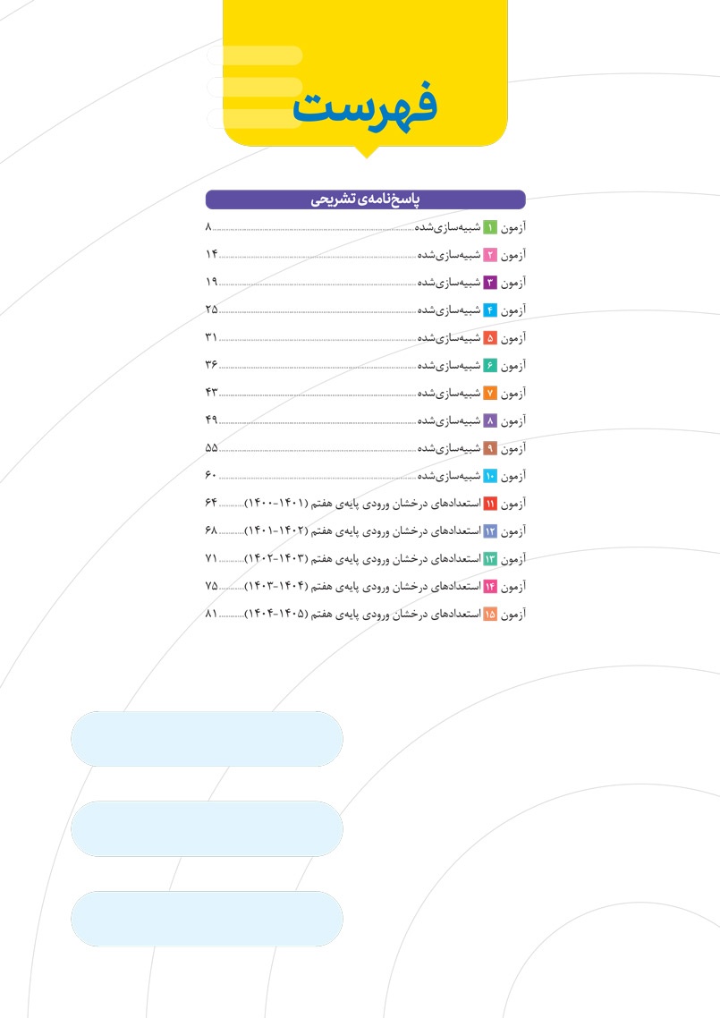 6- کتاب پاسخنامه شامل پاسخنامه‌ی تشریحی برای تمامی آزمون‌ها