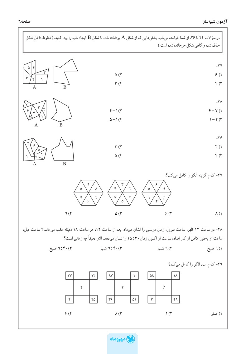 نمونه صفحات سمپادیوم ششم بسته شبیه ساز آزمون تیزهوشان