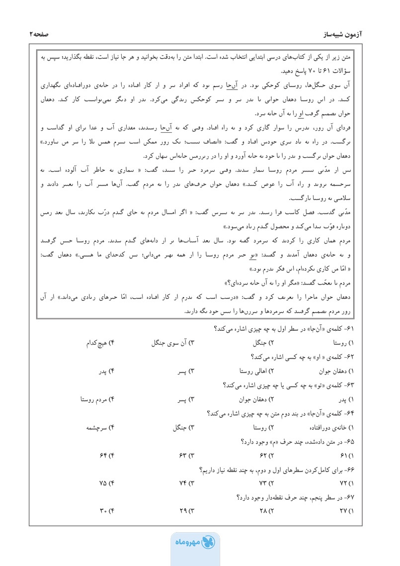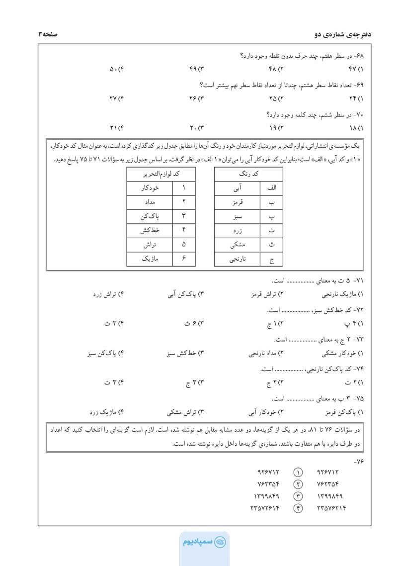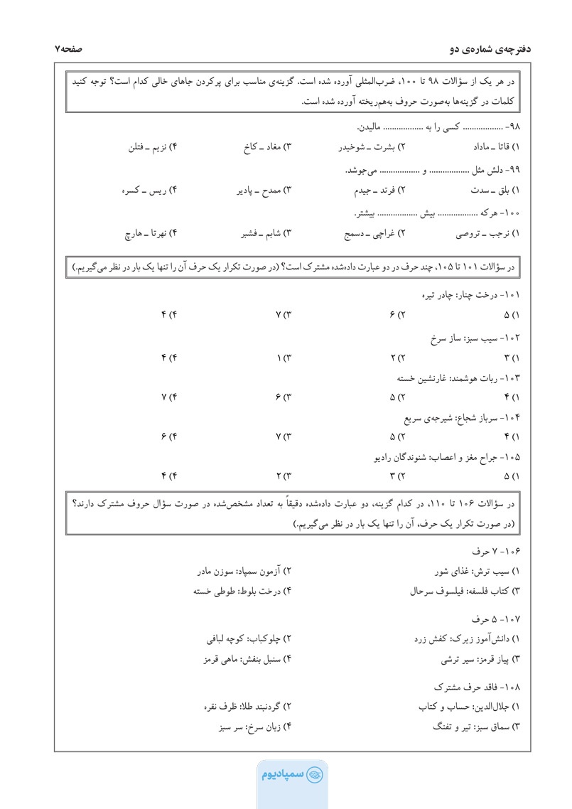 ۲- 10 آزمون‌ شبیه‌سازی شده (هر آزمون دو دفترچه)