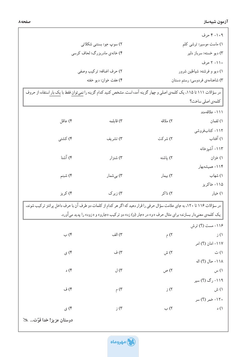 - 10 آزمون‌ شبیه‌سازی شده (هر آزمون در قالب 2 دفترچه)