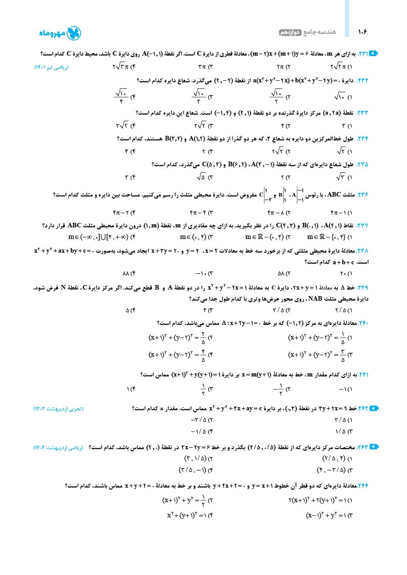 - مجموعه تستهای متنوع و استاندارد، مبتنی بر مطالب کتاب درسی و متناسب با سوالهای کنکور